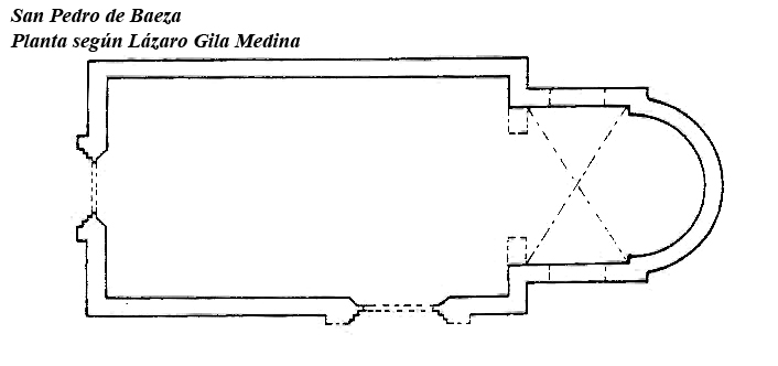 Sería un templo de una sola nave y cabecera con ábside de tambor cubierto por bóveda de cuarto de esfera y presbiterio con bóveda simple de crucería, construido completamente con sillares. La nave tendría 16'2 m de largo por 9'8 m de ancho. El presbiterio tendría 4'4 m de largo por 7 m de ancho. El ábside tiene 3'2 m de profundidad y 6'2 m en su mayor anchura (Ver planta).