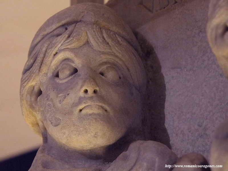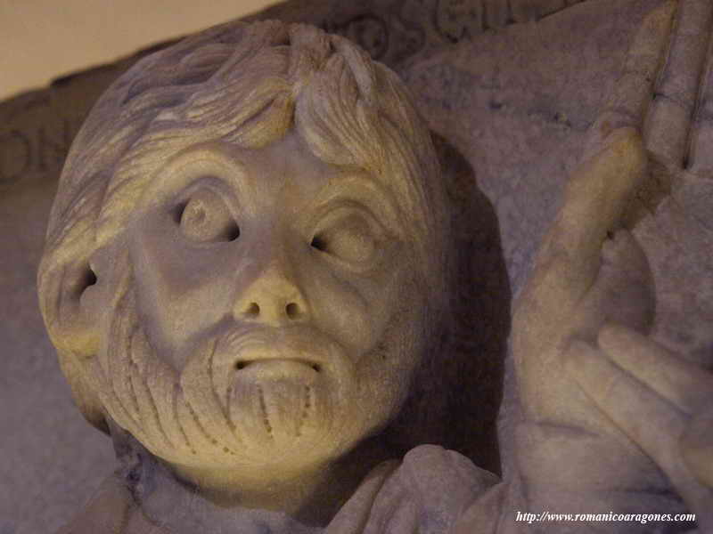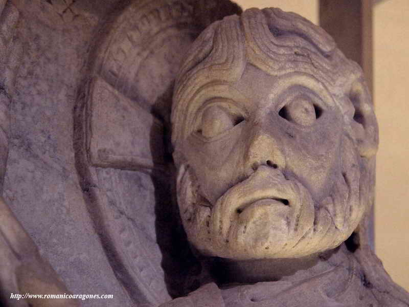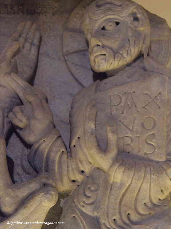 De la desaparecida portada de San Pere de Rodes añadida en el XII a la anteriormente existente, procede este relieve que en la actualidad forma parte de la colección del museo Marés.