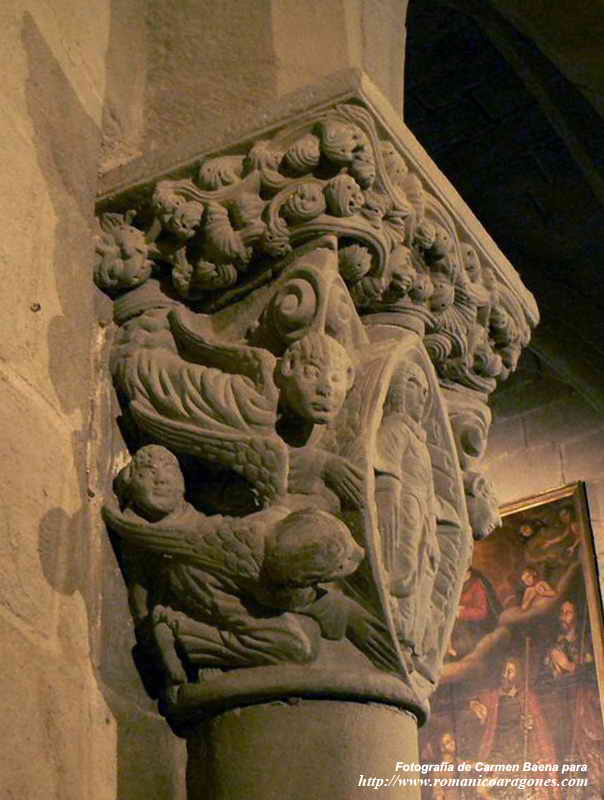 En su interior podemos encontrar un capitel que nos muestra la Asunción de la Virgen, tratada tanto Élla como los ángeles que la rodean con el estilo del Maestro del tímpano de Cabestany. Las alargadas manos de la Virgen adosadas a sus costados como en el mencionado tímpano, así como el característico perfil y ojos saltones de los ángeles, no dejan lugar a dudas.