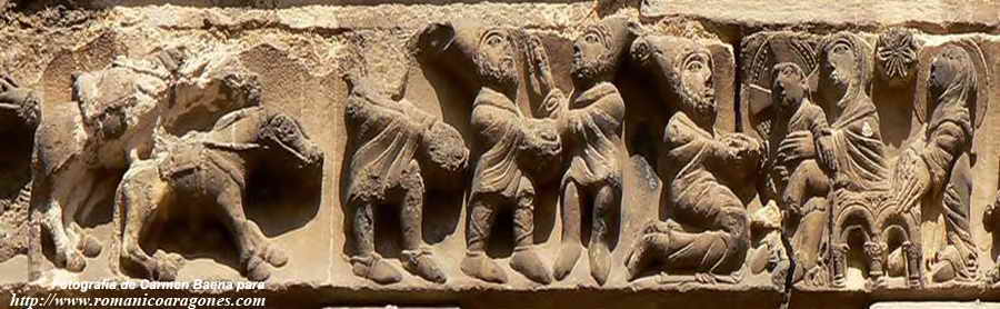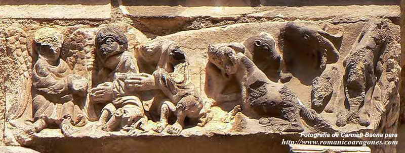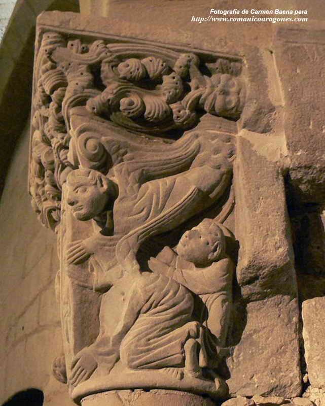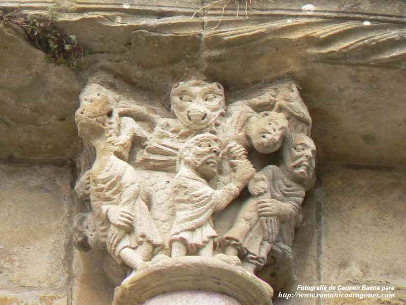 Correspondiente al exterior del ábside de Saint Papoul, entre Carcassonne y Toulousse, los capiteles que muestro, fotografiados al igual que el resto de las imágenes de esta pagina por Carmen Baena, muestran sucesivamente a Daniel en el foso de los leones y en el segundo, a los babilonios siendo devorados por los leones continuando el relato del libro de Daniel.