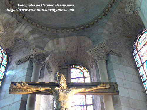 En el absidiolo norte, llamado la capilla del Crucifijo, encontramos la talla románica de un crucificado. Es de madera y está recubierto de placas de cobre, entre las que estaban engastadas piedras preciosas ( Imágenes 3, 4 y 5) .