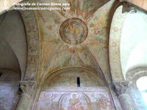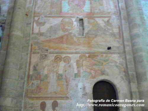 En el primer tramo de la nave colateral oeste se encuentran unos frescos románicos que representan el ciclo de la Resurrección -nº 20 en la planta- (Imágenes 13, 14 y 15) . De arriba abajo se ve: la Glorificación, la Ascensión, anuncio de la venida del Mesías , Jeremías e Isaías, la Resurrección y la muerte de Jesús.